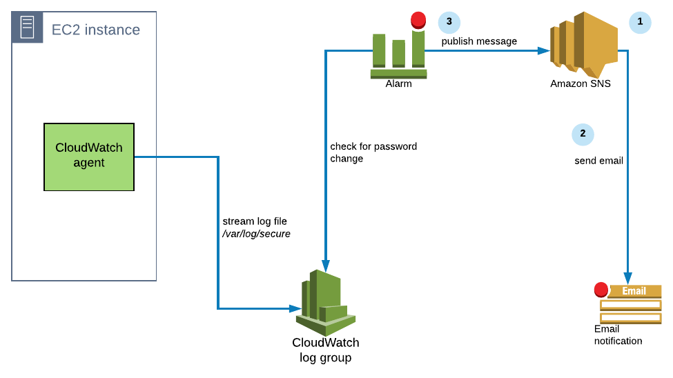 In the article [Shipping AWS EC2 logs to CloudWatch with the CloudWatch agent](http://Shipping AWS EC2 logs to CloudWatch with the CloudWatch agent) we setup the CloudWatch agent on an EC2 instance to stream the /var/log/secure log file to CloudWatch. We also included an alarm which notified us whenever someone tried to change their password on the EC2 instance.