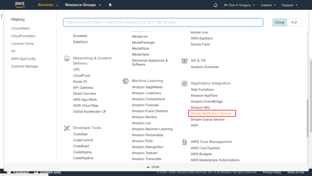 If you already have an alarm, follow these steps to setup an email notification from the AWS console. For a full end-to-end working example, including creating the alarm itself, see the next section.