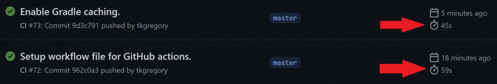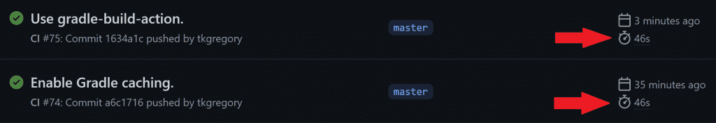 Commit and push the above change. The workflow run that executes now will save Gradle's cache on GitHub's servers.