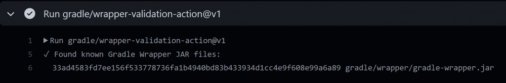 - uses: gradle/wrapper-validation-action@v1Now when your workflow runs it shows that your Gradle wrapper is valid.