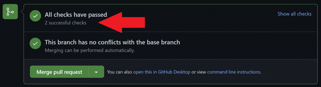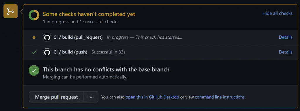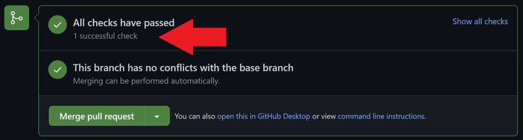 Now our PR shows only a single successful check. Much cleaner!