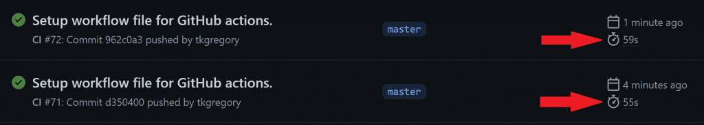 Let's trigger another workflow run by committing and pushing a whitespace change. Once the workflow run completes, you can see that the run durations are about the same.