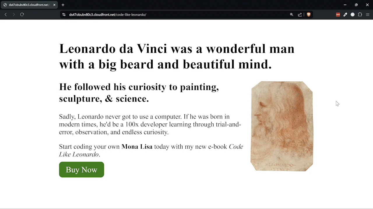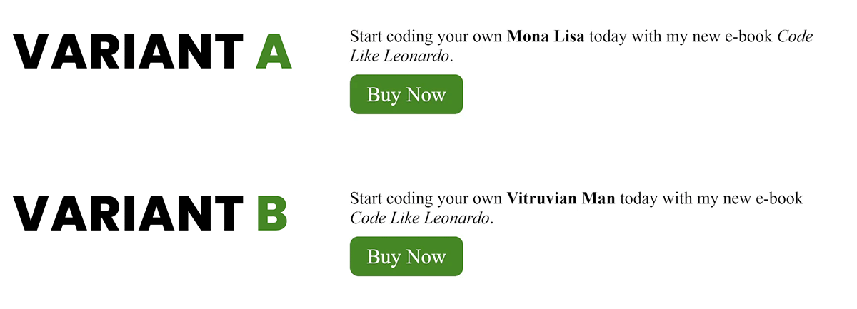 It's beautiful in its simplicity, but something has to change for our A/B test to return a different page for the same request to https://tomgregory.com/code-like-leonardo/.