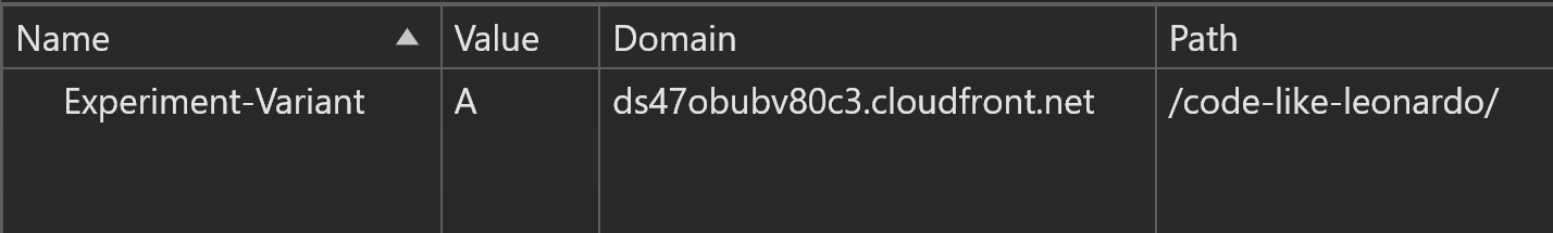 let cookieValue = "Experiment-Variant=" + request.headers["create-cookie-value"][0].value + "; path=/code-like-leonardo/";