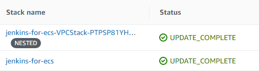 Stack two: ECS cluster, Jenkins ECS task, & ECS service