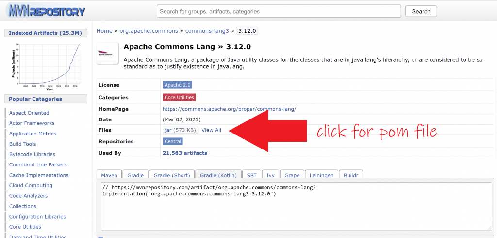 In fact, I can even see details of the library at mvnrepository.com, the website that shows the contents of the Maven Central repository.