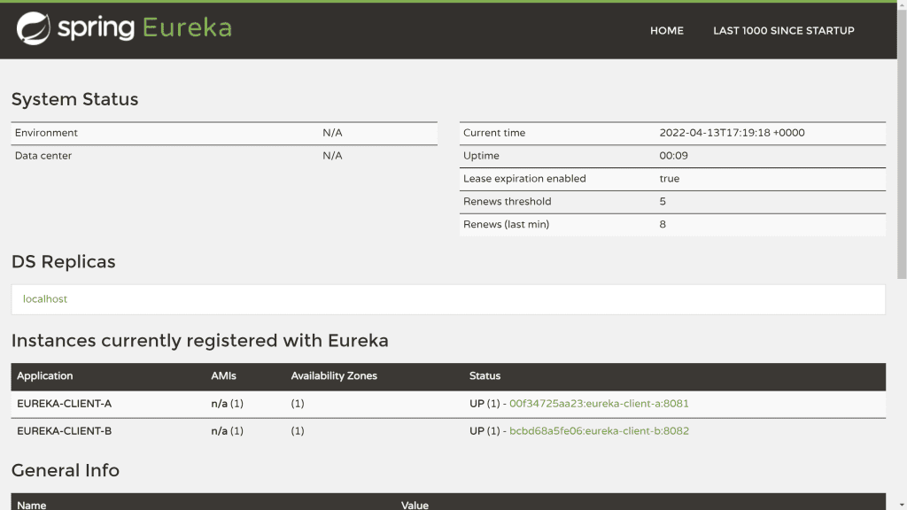 }To see the exact implementation, explore the code for the eureka-client-a and eureka-client-b projects.