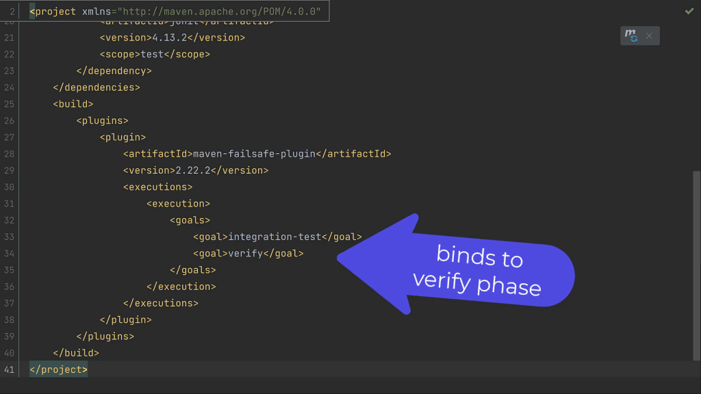 This plugin has a verify goal that it automatically binds to the verify phase to check the results of the integration tests.