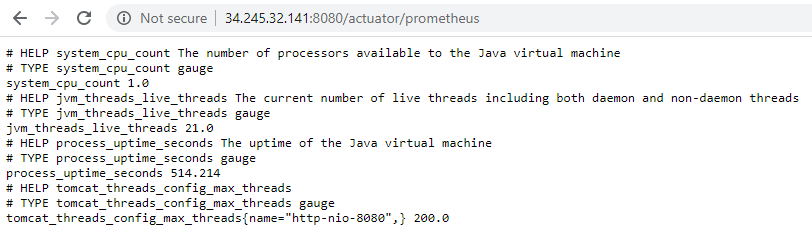 In the Network section you'll see a Public IP, which we can use to access the metrics endpoint at http://<public-ip>:8080/actuator/prometheus: