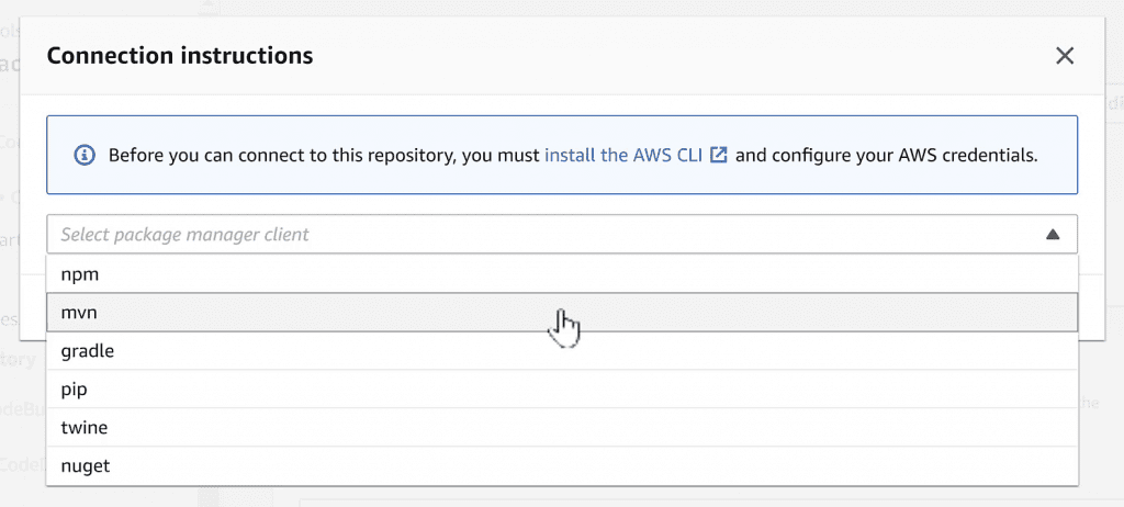 CodeArtifact provides instructions for publishing to and depending on your private repository in a variety of build tools, including Maven and Gradle.