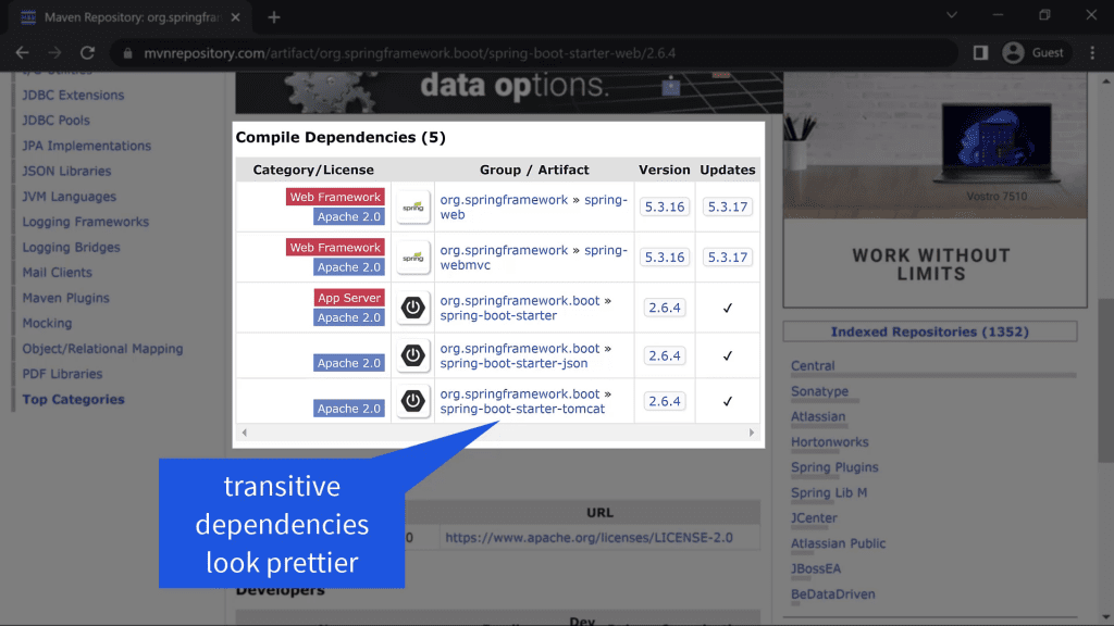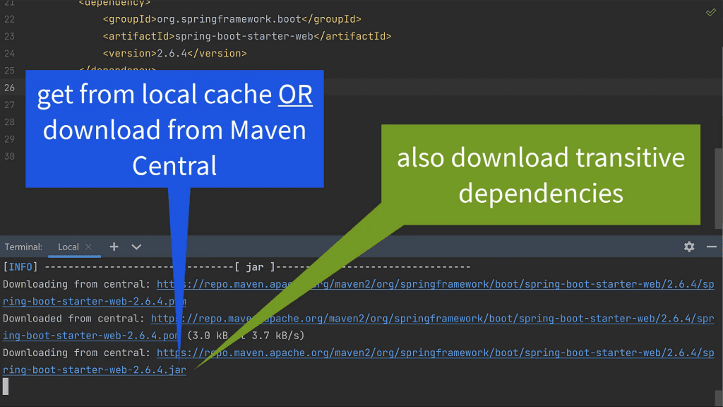 That means when a build tool downloads this artifact, it can also download transitive dependencies at the same time. We'll get into that shortly with a worked example in Maven and Gradle.