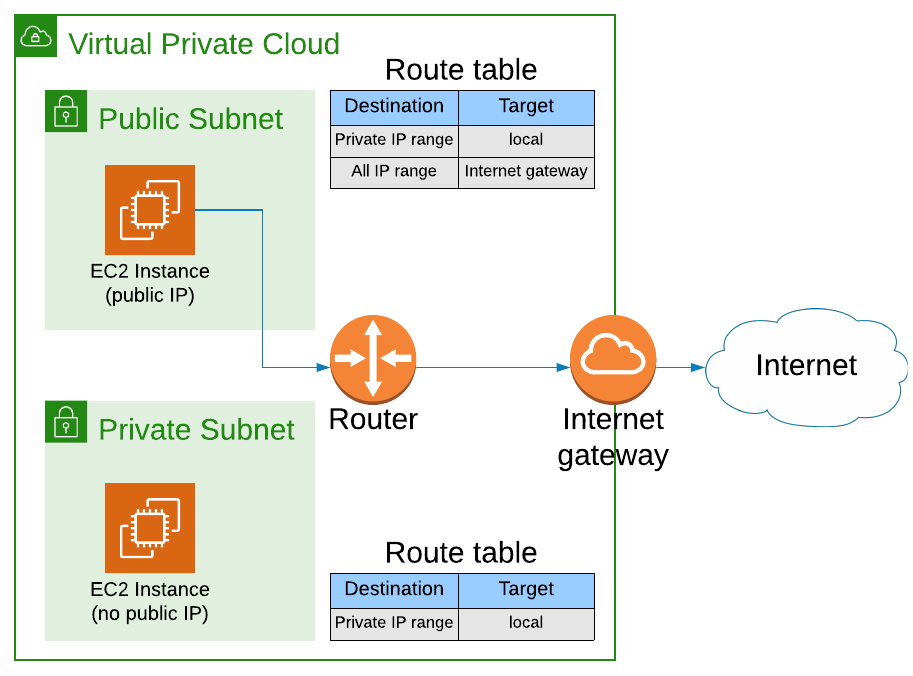 Internet gateways and route tables